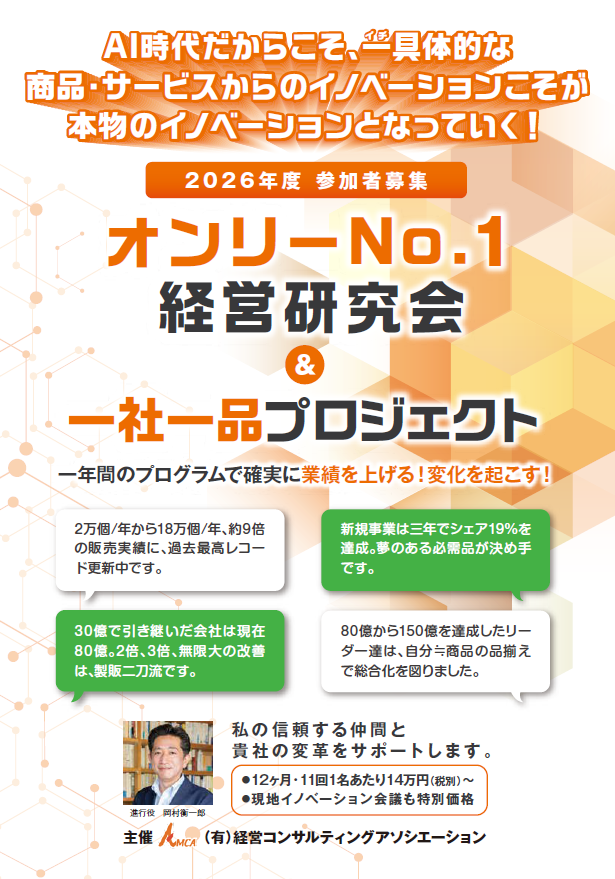 オンリーNo.1経営研究会は、企業ごとの強みを活かした**「オンリーNo.1商品」**を生み出し、